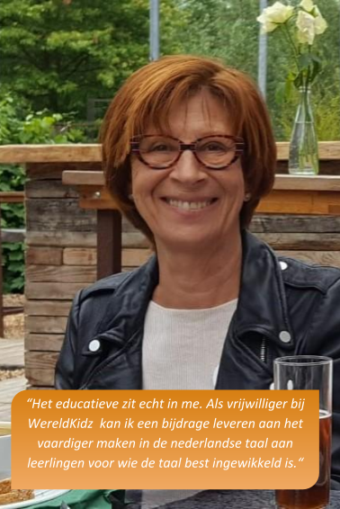 Marjan is vrijwilliger op WereldKidz Hoogstraat. Ze is geen onbekende in het onderwijs. Begin jaren 70 gaf Marjan parttime les op een basisschool. “Dit was in een tijd waarin het onderwijs nog erg klassikaal was en er nog niet gedifferentieerd werd. Toen merkte ik al dat ieder kind een ander niveau heeft. In die tijd kreeg ik al de eerste kinderen van Turkse gastarbeiders in de klas. Na een jaar of 8 ben ik het bedrijfsleven ingegaan en ben ik bij een internationale bank gaan werken waar ik een opleidingstraject heb ontwikkeld voor trainees. Toen ik daar stopte, wilde ik graag vrijwilligerswerk gaan doen. Een buurvrouw is leraar op WereldKidz Hoogstraat en introduceerde mij op de school. Het educatieve is toch altijd in me blijven zitten. Hier kan ik een bijdrage leveren aan het vaardiger maken in de nederlandse taal aan leerlingen voor wie de taal best ingewikkeld is. “